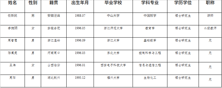 经过公开发布招聘计划、接收简历、资格审查、面试、政审、体检、人才工作会议、人才领导小组会议、校长办公会议等程序,确定下列人员为我单位拟聘用人员,并公示如下: